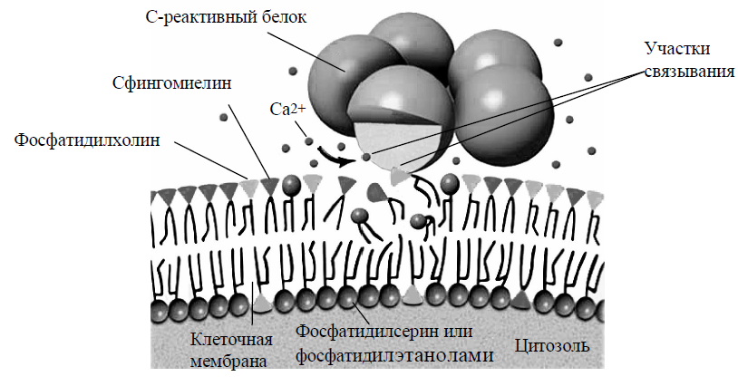 Схема связывания СРБ с компонентами клеточной стенки бактерий