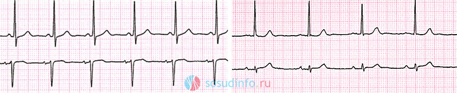 - нарушения ритма – слабость синусового узла, замедленный ритм (брадикардия, блокада проведения импульсов в атриовентрикулярном узле);