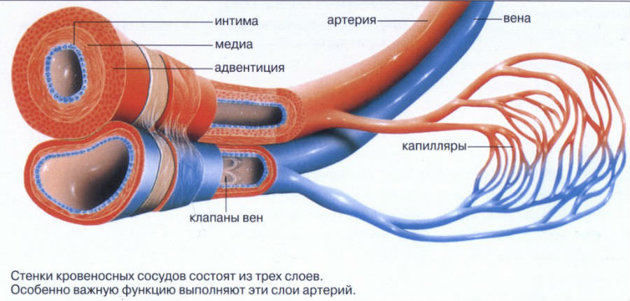 Артерии и вены, в первую очередь, различаются по строению стенки