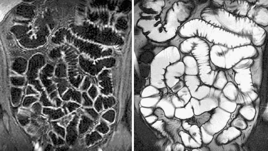 Петли кишечника переплетены и образуют сложный рисунок на экране томографа.