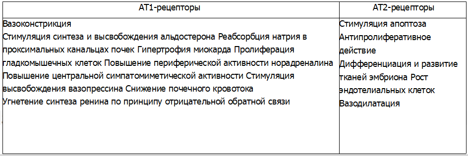 Эффекты ангиотензина II, опосредуемые через АТ1- и АТ2-рецепторы
