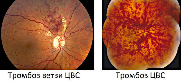 Не случайно тромбозы центральной вены и артерии сетчатки называются сосудистыми катастрофами. Тромбоз артерии сетчатки приводит к состоянию, называемому инфаркт глаза. Тромбоз вены сетчатки не уступает окклюзии артерии сетчатки своей стремительностью развития и тяжелыми последствиями для зрения, а частотой встречаемости даже превосходит ее. При нарушении проходимости центральной вены сетчатки, у 67.2% пациентов поражается одна из ее ветвей.