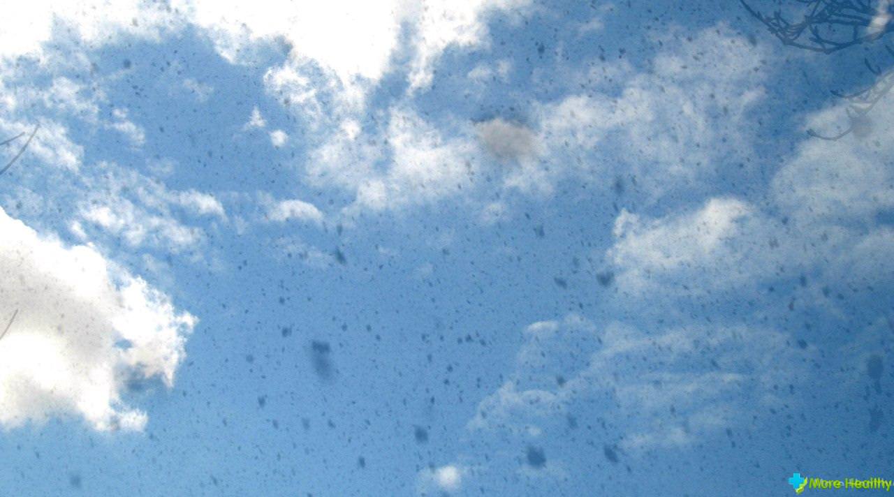 Иногда, фиксируя взгляд на белой поверхности, мы видим черные точки или паутинки, которые перемещаются при движении глаз.