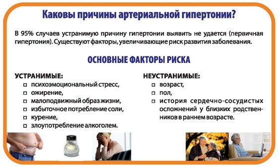 - Появление артериальной гипертензии зависит от возраста человека. В молодом возрасте, в основном, — вторичные гипертензии — из-за курения, алкоголизации, наркотиков, вертебробазилярной недостаточности, врожденных аномалий сосудов, почек, надпочечников, гипофиза . В среднем возрасте — за счет избыточной массы тела, нервно-психических нагрузок или перенесенных заболеваний с поражением сердца, сосудов, почек. А в возрасте после 40 лет — это почти всегда результат склеротического поражения сосудов;