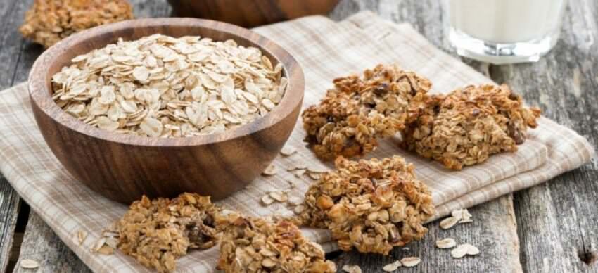 Хлопья заливают кефиром и оставляют на 1,5 часа. Затем к ним добавляют яйцо, масло и фруктозу, предварительно растворенную в столовой ложке воды. Смешивают все сухие компоненты и соединяют с кефирной массой. Тщательно вымешивают и выкладывают ложкой на силиконовый коврик в духовку или лист промасленного пергамента. Выпекают 35 минут при 180 градусах.