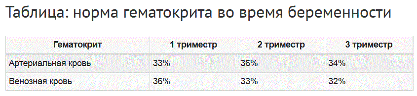 Норма гематокрита при беременности в таблице за первый, второй и третий триместр в процентах.