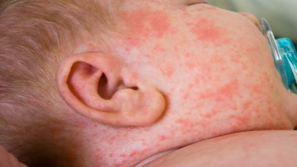 Экссудативно-катаральная, или просто экссудативная, форма недуга характеризуется преимущественным поражением кожных покровов. Патология развивается у малышей от двух до шести месяцев, которые находятся на искусственном или смешанном вскармливании. Детей с такой формой диатеза легко узнать по наличию на лице и теле воспалительных элементов. Кожа имеет красноватый оттенок, сильно шелушится и крайне болезненна при пальпации. Ребёнок легко травмирует её ногтями, когда сдирает чешуйки. Воспалённые элементы зудят, в результате чего малыш постоянно просыпается по ночам.