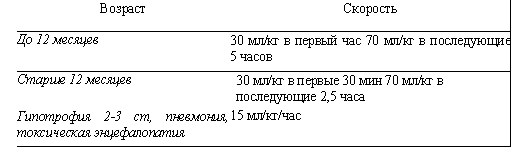 Согласно рекомендациям ВОЗ, при отсутствии лабораторного контроля и необходимости быстрого проведения инфузионной терапии первоначально скорость введения растворов следующая: