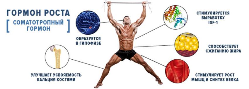 Также гормон участвует в «переносе» жиров, белков и микроэлементов в клетки, активизирует синтез аминокислот, в результате чего увеличивается работоспособность мышц, участвует в процессах регенерации, стимулирует работу ферментов, необходимых для образования гликогена.