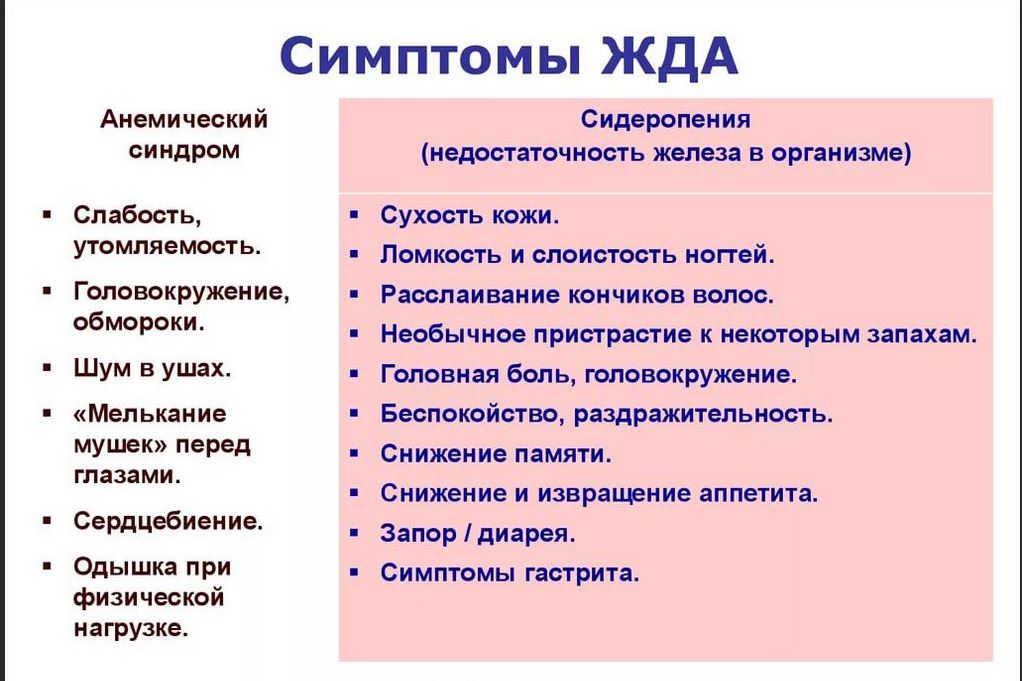 Признаки дефицита железа проявляются со стороны различных органов и систем, но не носят специфического характера: