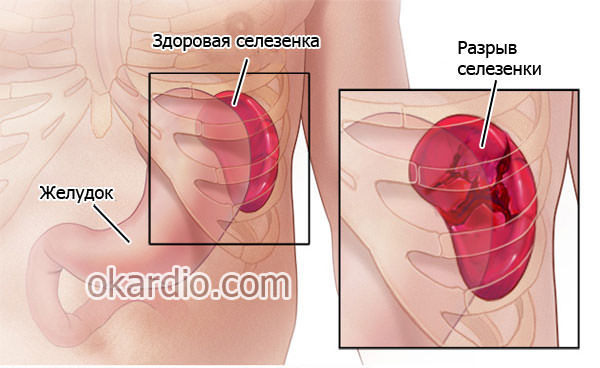 - Открытые и закрытые травмы живота и области поясницы с повреждением либо разрывом внутренних органов, чаще селезенки или печени, реже – кишечника и поджелудочной железы. Массивное кровотечение в брюшную полость вызывают удар при драке или во время автокатастрофы, компрессионное сдавление – при придавливании тяжелым предметом и т. п.