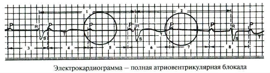 Тяжелым проявлением полной атриовентрикулярной блокады является синдром Морганьи-Адамса-Стокса, вызванный в половине случаев кратковременной асистолией желудочков при сохраненном трепетании предсердий. Другая половина представлена исходом трепетания или фибрилляцией желудочков (гипердинамическая форма).