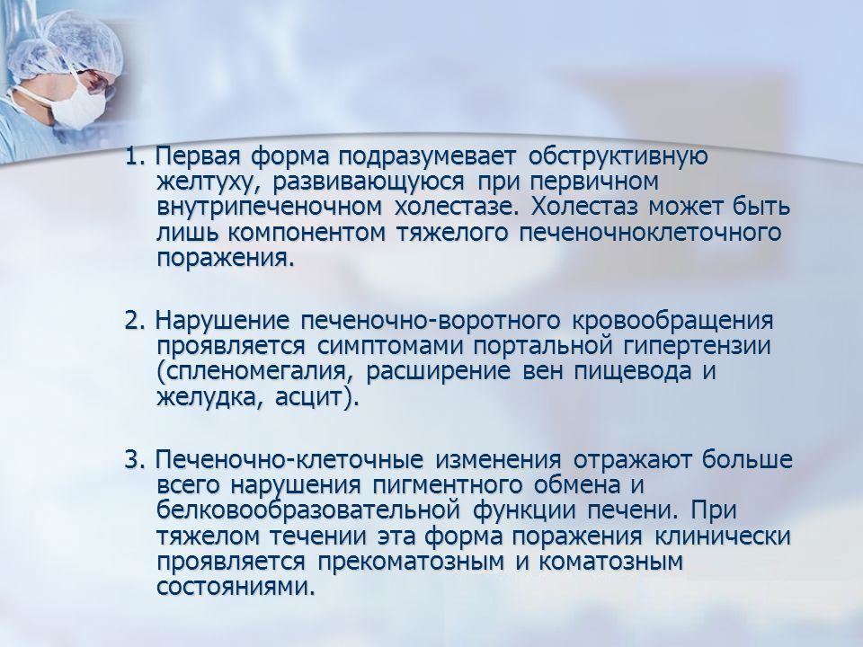 По механизму появления выделяют парциальный, диссоциативный и тотальный холестаз. Парциальный характеризуется уменьшением количества продуцируемой желчи, диссоцитивный – задержкой выделения некоторых составляющих, тотальный – нарушением поступления желчи в двенадцатиперстную кишку.