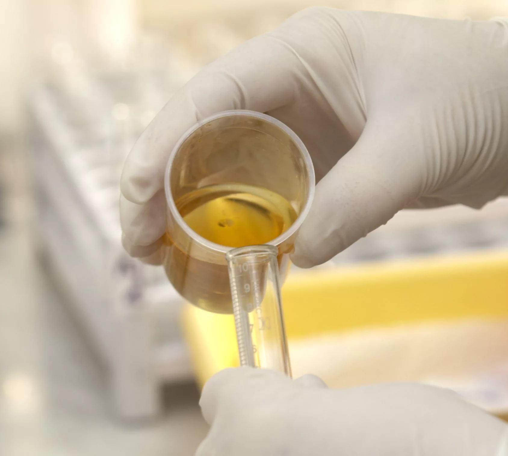 Важно, чтобы объем биоматериала второго стаканчика был больше, чем первый