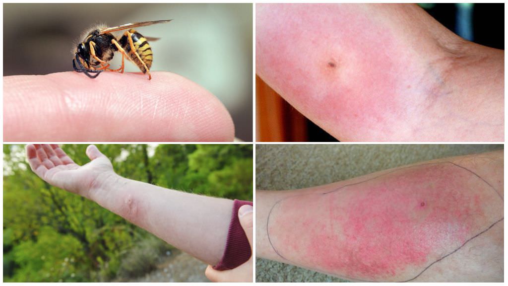 В составе пчелиного яда есть боле 13 агрессивных компонентов. Считается, что резкая боль и чувство жжения возникает при попадании в организм ацетилхолина и серотонина. Эти вещества провоцируют спазм сосудов и раздражают нервные окончания в дерме. В яде осы также содержится такое вещество, как мастопаран пептид, оно может повышать концентрацию гистамина в зоне укусов, а это влечет за собой сильное сужение кровеносных сосудов. В конечном итоге, ишемия увеличивает воспалительную реакцию и расширяет сосуды обратно. Это вызывает повышенную проницаемость капилляров, отек и покраснение в месте укуса.