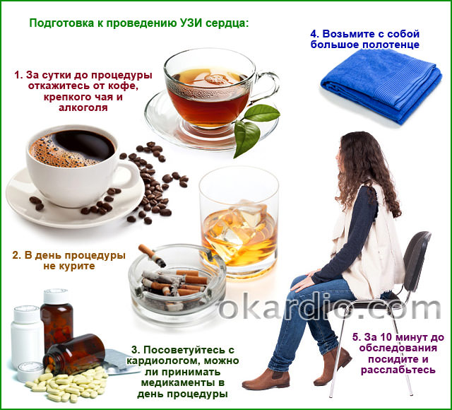 - Если вы принимаете какие-либо медикаменты, предупредите об этом кардиолога, который направил вас на УЗИ сердца. Возможно, он посоветует пропустить прием лекарств в день процедуры.
