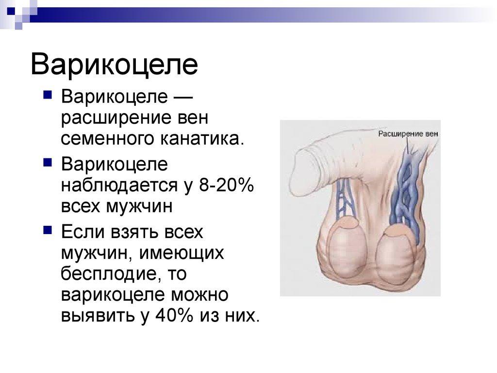 Варикоцеле относят к мужским варикозным заболеваниям нижних конечностей, когда нарушается кровообращение в лозовидном (гроздевидном) сплетении семенного канатика и яичке в результате расширения вен.